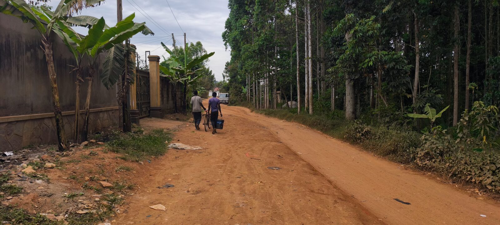 Wir sind Richtung Kisubi gefahren und sie hat mir ihr Grundstück gezeigt, das sie vor Jahren gekauft hat, wo sie angefangen hat, ein Haus draufzubauen. Sie wollte meine Meinung hören, wie wir damit weitergehen. Fertig bauen? Abstoßen? Was macht Sinn? Wir sind danach noch ein Stück gemeinsam gelaufen, einfach Straße runter, Umgebung aufnehmen.